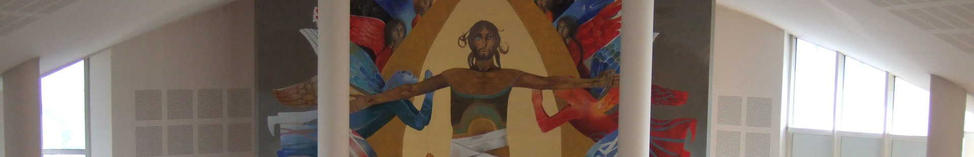 À la fin des années 1980, à la demande du Sanctuaire, Arcabas peint plusieurs toiles destinées à y être exposées. L’artiste va réaliser également des peintures murales dans l’abside, avant de concevoir mobilier liturgique, verrières et tabernacle pour la nouvelle « chapelle de La Rencontre», inaugurée en 1995.